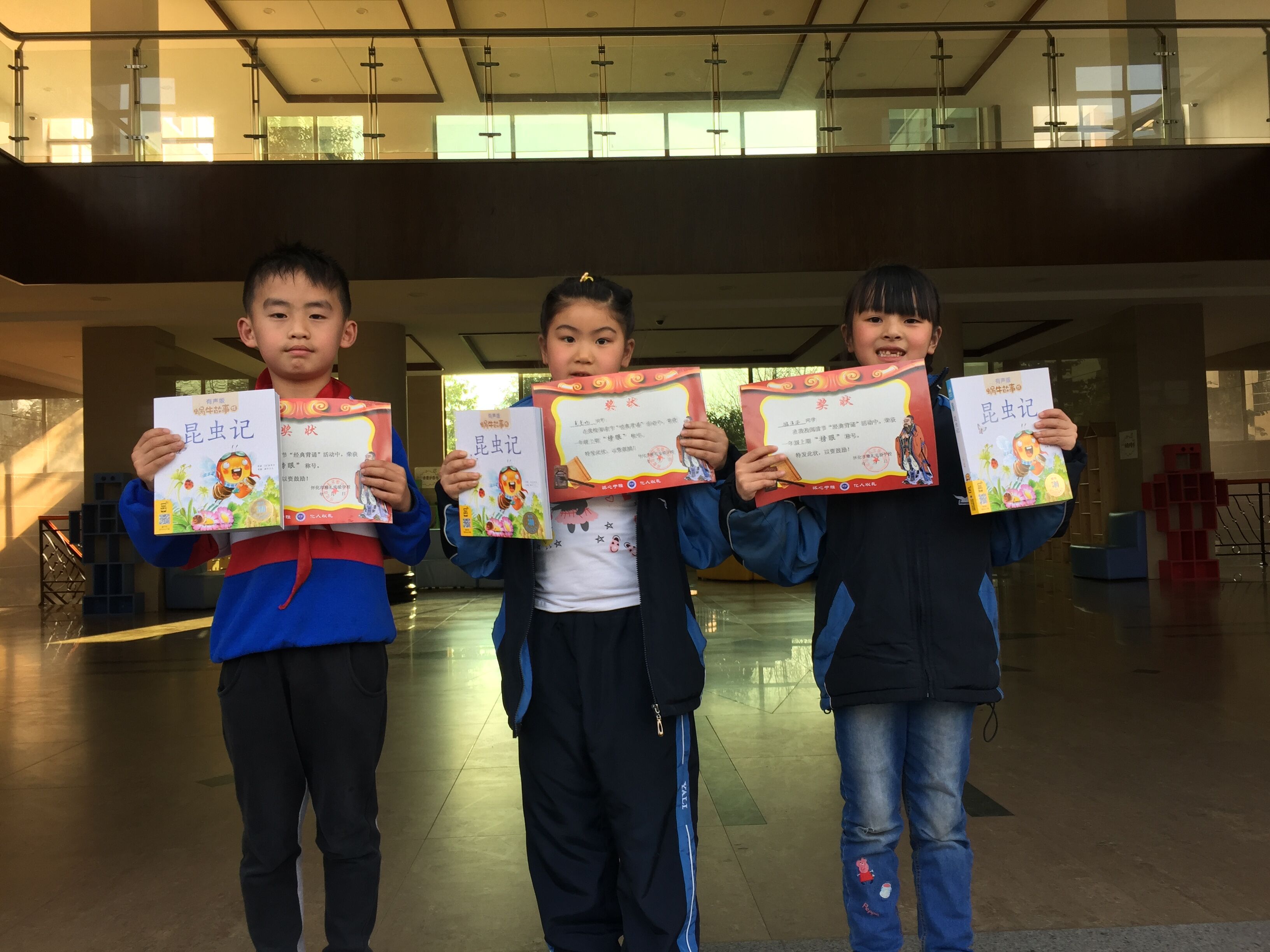 接下來頒發的是“榜眼”獎項。獲得此項榮譽的小朋友分別是:一班黃曼嬌同學、滕景茹同學和二班米彭睿同學,他們取得了190顆以上的星星,特別棒!大家開心、有序地走上頒獎臺,從唐副校長手上接過榜眼的獎品——經典圖書《昆蟲記》,舉在手上和臺下的小朋友們一起分享這份喜悅。