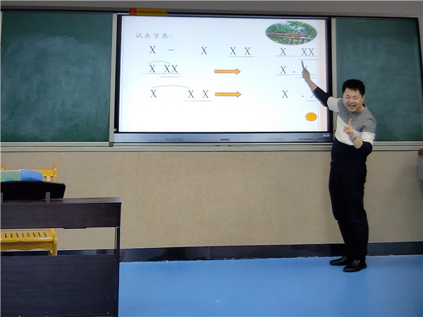 本堂示范課由校長助理鄒文重老師主講,課題為《丟丟銅仔》。課堂中鄒老師抑揚頓挫的語調,熟練的教學技能,富有激勵性的課堂用語使每位教師深受感染,整堂課以情景導入(鳴笛啟程);合作探究(一路歡歌);拓展提升;課堂小結四個方面來展開教學,不僅一開始能為學生創設輕松有趣的學習情境,更能激發學習興趣,又全面調動了全體學生積極參與,利于演唱時對歌曲情感的把握;而且能根據學情層層遞進,突出重點、突破難點,善于讓學生學會節奏型的理解和運用,利用這種旋律和節奏的組合學習,讓學生突破難點,最后注重以學生為主體教學,注重審美情趣的培養和音樂素養的訓練是本堂課的最大亮點,這也是后期音樂課應該注重和堅持的方面。