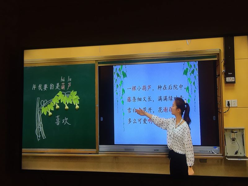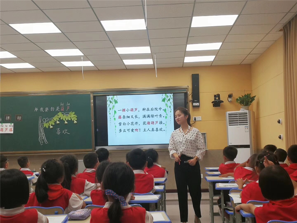 我校劉佩老師執(zhí)教的《我要的是葫蘆》,創(chuàng)新地用貼畫展示了小葫蘆的生長過程,引起孩子們陣陣驚奇的呼聲。扎實的識字教學和富有童趣的閱讀教學相結合,給大家奉上了一道可口的佳肴。
