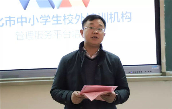 市教育局副局長段興龍講話。他強調了此次培訓會議的重要性,并希望通過此次培訓,能夠提高校外培訓機構信息化管理水平,實現全過程精細化監管,進一步推進校外培訓機構專項治理。