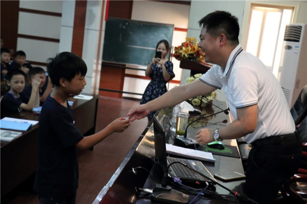 提問時,很多同學都舉起自己的小手,暢所欲言。對于表現積極主動,認真回答的同學,鄒助理同樣授予了限量版的紀念徽章,學生們臉上洋溢著青春的笑容。
