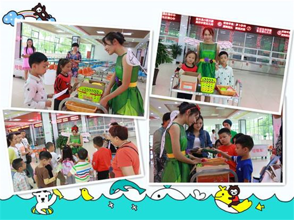 沿著干凈寬敞的校道,我們來到了學(xué)校餐廳,這兒有一位身穿綠裙的仙子——“蔬菜精靈”在等著我們呢。