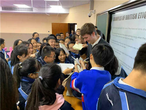 而Mat則帶來英國文化課程。他向同學們介紹了英國皇室現在的情況,英國的禮儀,紳士風度以及英國的一些實際情況,同時學生們也與Mat交流了外教對中國的食物和中國文化的看法。