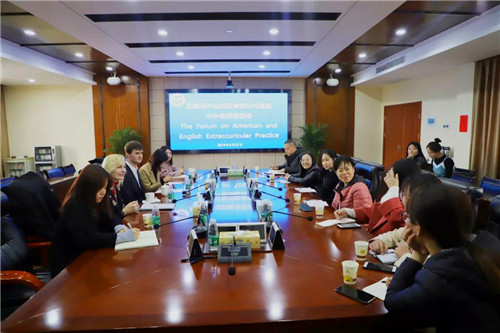 最后,我校英語組老師與兩位學者在二樓會議室召開了“英美課外實踐教育理論與落實”中外教師座談會。雙方就中國孩子學習英語的困難以及國際學生在寄宿家庭中遇到的各種問題等等進行了交流探討。我校英語老師熱情大方地解答外國學者的問題,并向對方提問,整個座談會輕松融洽,為加強我校教育事業國際化發展奠定了良好基礎。