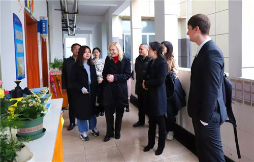 在校長嚴瑩、副校長唐海燕的陪同下,兩位外國學者先后參觀了我校小學部英語課堂、校園文化長廊、學生公寓、物化實驗室以及大課間活動。參觀過程中,我校嚴瑩校長親切地向外國友人介紹了我校的辦學理念、雅禮文化以及教學結構,深得兩位學者的欣賞和贊美。