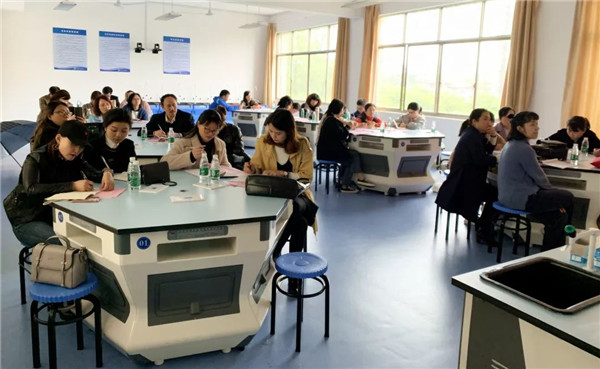 馬智君老師評價易娟老師的人是”小年紀,大能量“,易娟老師的課堂是“別開生面、耳目一新”。其中的”大“,一是表現在易娟老師在教學過程中突出了互聯網的”眾籌理念“和大數據的作用,在課堂上應用了微課、手機投屏以及平板展示寫作素材;二是表現在易娟老師的課堂把控力,以有趣+有效的方式進行課堂教學,課堂生成效果好。最后,馬智君老師對我校教師的專業素養、教學理念以及“立德樹人”的育人目標表示肯定和贊揚。