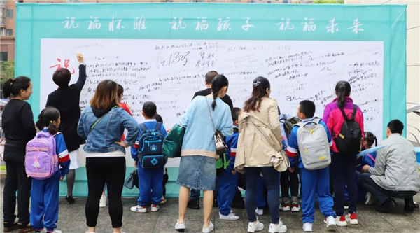 描繪藍(lán)圖,助力成長(zhǎng),同心共進(jìn),一起祝福。祝福懷雅,祝福孩子,祝福未來(lái)。家長(zhǎng)們簽到后,紛紛拿起筆在祝福墻上寫下了對(duì)孩子、對(duì)學(xué)校、對(duì)未來(lái)的祝福。他們的臉上都洋溢著幸福、自豪的笑容。未來(lái)可期,懷雅將與你們一起為了孩子共奮進(jìn),齊努力,就像祝福墻上寫下的那樣“愿孩子們?cè)趹蜒诺男@里放飛夢(mèng)想,愿懷雅在三湘大地越辦越好”。
