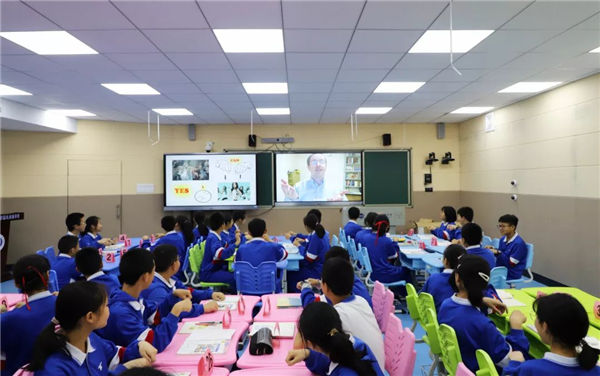 我校自辦學(xué)以來(lái),十分重視對(duì)學(xué)生英語(yǔ)素養(yǎng)的培養(yǎng)。為了給孩子們提供一個(gè)良好的英語(yǔ)母語(yǔ)教學(xué)環(huán)境和培養(yǎng)孩子們?cè)鷮?shí)的英語(yǔ)口語(yǔ),我校引進(jìn)美國(guó)直播云課。每周孩子們可通過(guò)直播,和美國(guó)優(yōu)秀教師跨時(shí)空對(duì)話,直觀感受英語(yǔ)文化。