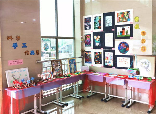 老師們?yōu)榱舜舜涡@開(kāi)放日,提前精心布展,用心陳列出孩子們的作品,以便家長(zhǎng)觀看。