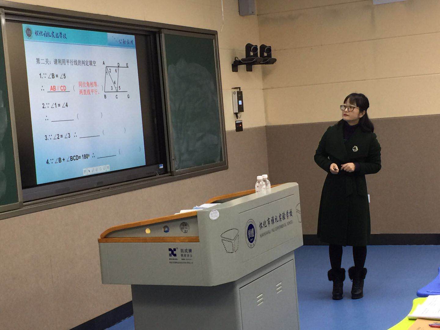 此次教學研討會,本著“開放共享、合作共贏”理念,我校張懷容老師向大家展示了《平行線的判定與性質有關的證明》示范課。在課堂中,張老師精心設計,課堂亮點頻現,充滿了生態的原味,濃濃的思考味讓學生樂于動腦探究,清晰的數學味兒讓學生感悟到數學的魅力。一是導學案設計“全”、“精”、“巧”;二是采用了“基礎闖關-合作闖關-終極闖關”的教學方法;三是巧妙的將“數學建模”、“分類討論”和“規范書寫”思想貫穿整個課堂;四是創新數學“說題”能力的培養;五是注重“一題多解”的培養。