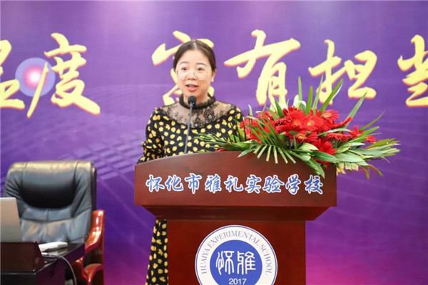 接著,優秀教師代表魯玭老師上臺發言。作為教師代表,魯玭老師向教師們講述自己放棄原有工作,而投入懷雅這個溫暖的大家庭,是因為被懷雅的教育教學理念、發展前景深深吸引,也是對懷雅辦學的肯定和信任。作為懷雅的教師,既是幸運的,也是有壓力的,希望教師們多學習、多實踐,在懷雅這個大舞臺上得到進步與提升。