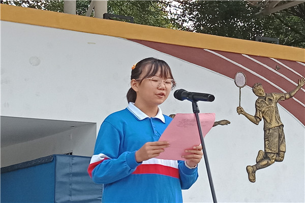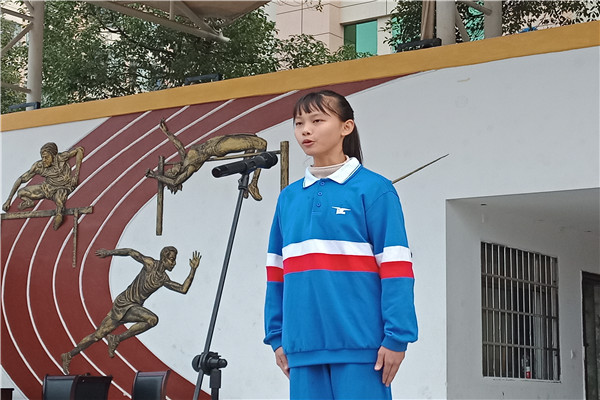 大家早上好!我是來自C1906班的覃思穎,今天我國旗下講話的題目是“走在陽光下,勤奮促成長”。