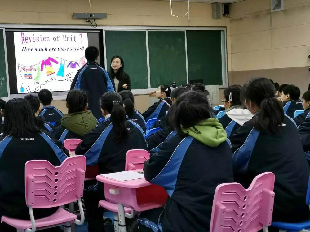 隨后,由我校七年級英語備課組組長喻歡葉老師在1904班上復習課。歡快的歌曲開場白讓人眼前一亮,喻老師以全英文的口語表達將知識點講述得詳細清晰,與學生的互動也恰到好處,同時從學生的答題與反饋中也能看出學生對于課堂知識的學習易于接受與掌握,課堂學習效果較好。課后英語組老師們進行了評課交流活動,并在張老師的指導下,對如何上好復習課,提高復習課的效率有了更明確的思路。