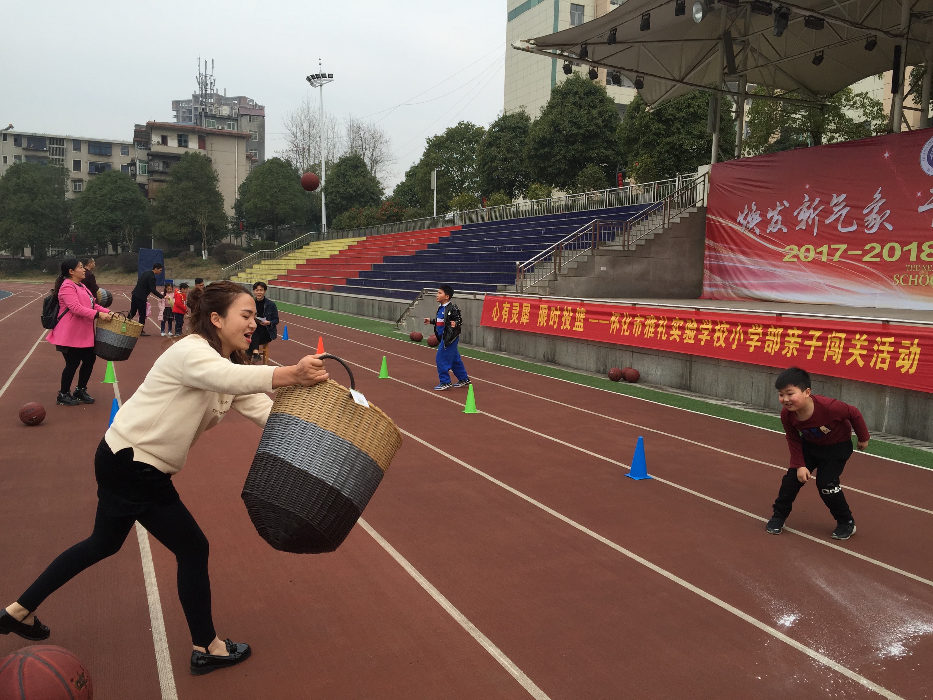 每到晴朗的天氣老師都會(huì)讓我們?cè)陉柟庀伦杂勺栽诘赝嫠#裉煲膊焕狻T谔飶綀?chǎng)上設(shè)置了很有意思的親子趣味投籃。我到現(xiàn)場(chǎng)的時(shí)候已經(jīng)有很多小朋友玩兒得滿頭大汗啦!好多爸爸媽媽端著“籃筐”來回移動(dòng)跳躍,現(xiàn)場(chǎng)十分熱鬧。弄明白規(guī)則之后我們也加入了挑戰(zhàn),終于在我和爸爸媽媽的齊心協(xié)力之下,最后一關(guān)也通過啦!