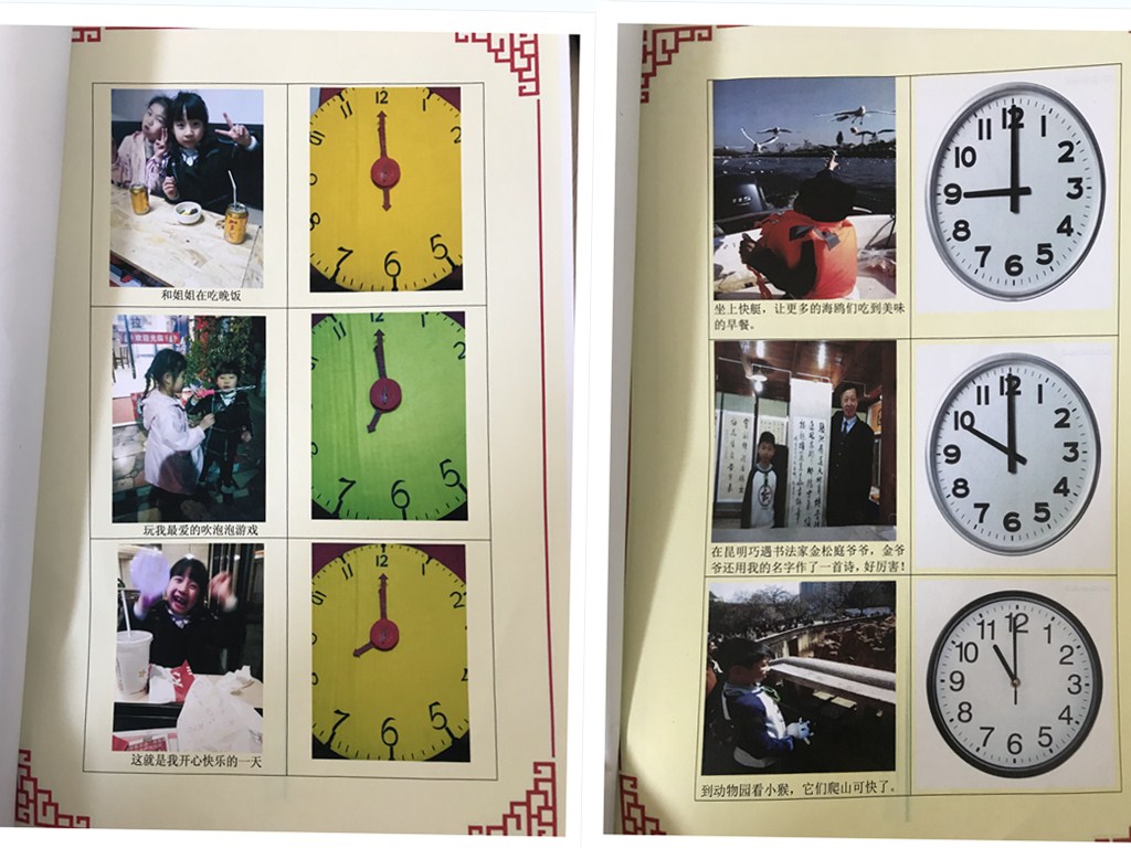 一班黃祖桐小朋友的實踐作業——鐘表制作美觀大方,記錄細致有序。