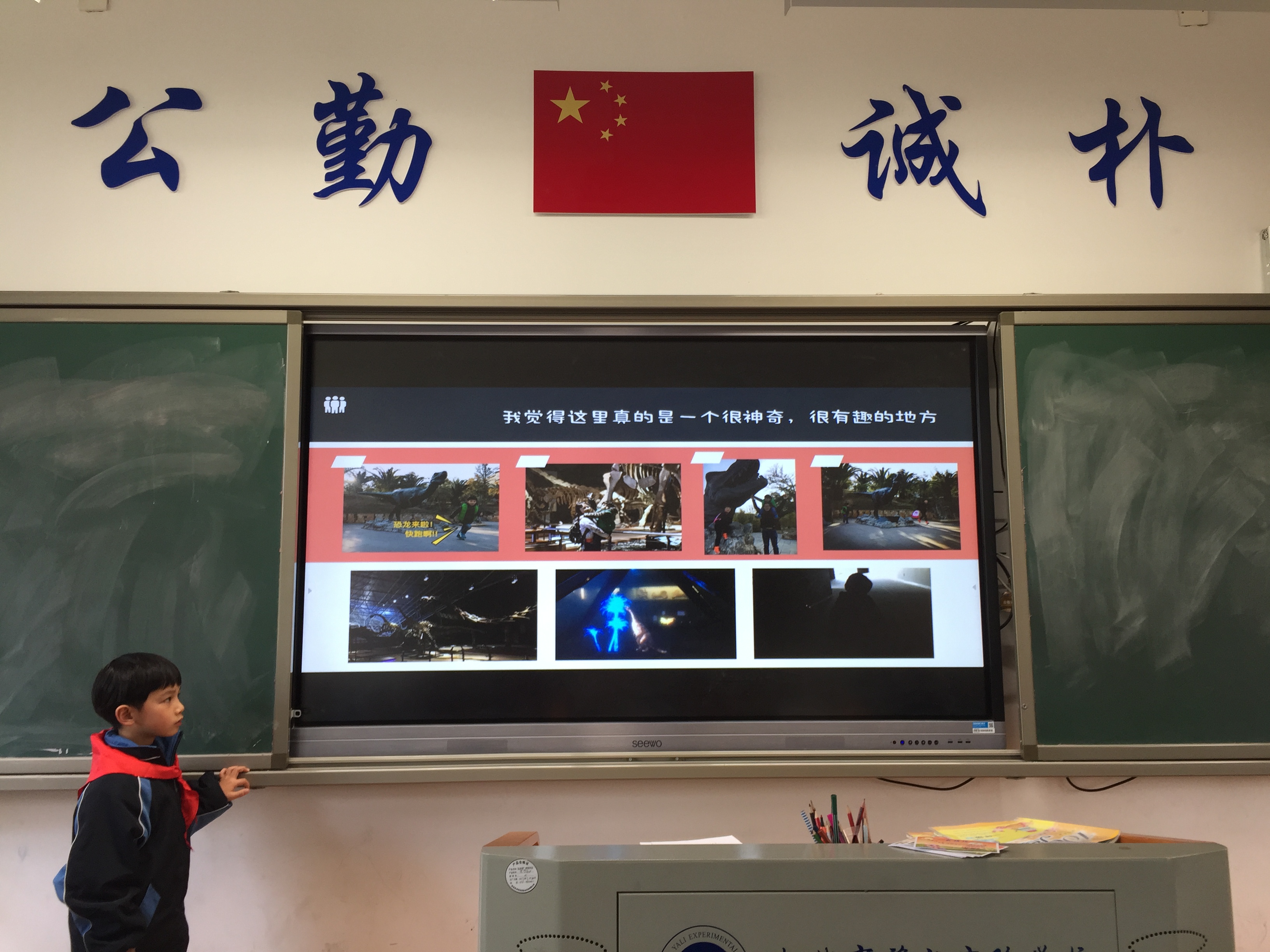 二班李培溪小朋友的實踐作業別出心裁,記錄了去參觀一個“神奇的地方—恐龍模型展”的詳細經過,相片清晰細致,活動記錄十分詳細,非常用心!同學們贊嘆不已。