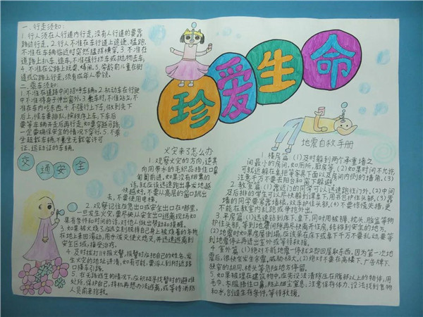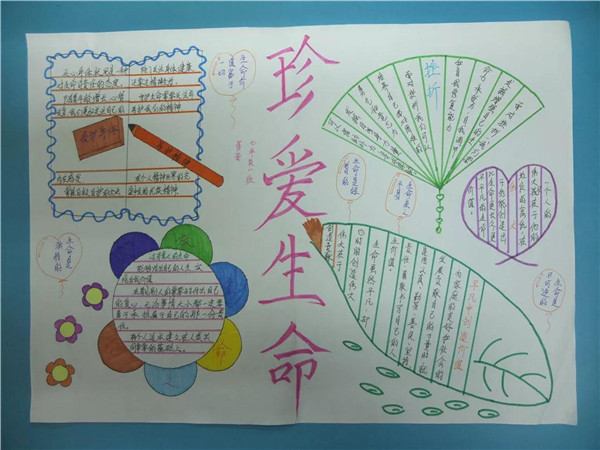 這門(mén)課程以學(xué)生生活經(jīng)驗(yàn)為依據(jù),以青春生命在與他人、與集體、與社會(huì)、與國(guó)家以及全球關(guān)系中的自我發(fā)展為線索,以培養(yǎng)社會(huì)主義合格公民為中心,遵循生活邏輯,整合道德、心理、法律及國(guó)情方面的知識(shí)領(lǐng)域,培養(yǎng)學(xué)生正確地世界觀、人生觀、價(jià)值觀。 孩子們?cè)诩倨谝?ldquo;珍愛(ài)生命”為主題制作手抄報(bào),表達(dá)珍惜生命、珍惜時(shí)光,不負(fù)美好年華的理想。