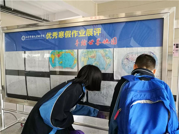 地理學(xué)科組則讓同學(xué)們手繪世界地圖,通過(guò)繪畫(huà)的形式表達(dá)對(duì)美麗中國(guó)、美好家鄉(xiāng)的贊美和熱愛(ài),對(duì)和諧世界的憧憬與向往。