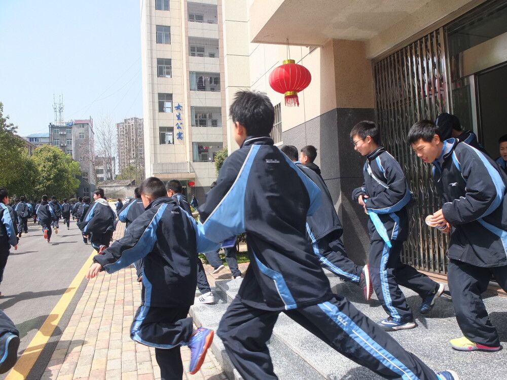 警報響起的第一時間,正在上課的老師立即中斷課堂,引導學生有秩序地走出教室,迅速往空曠地田徑場跑去。