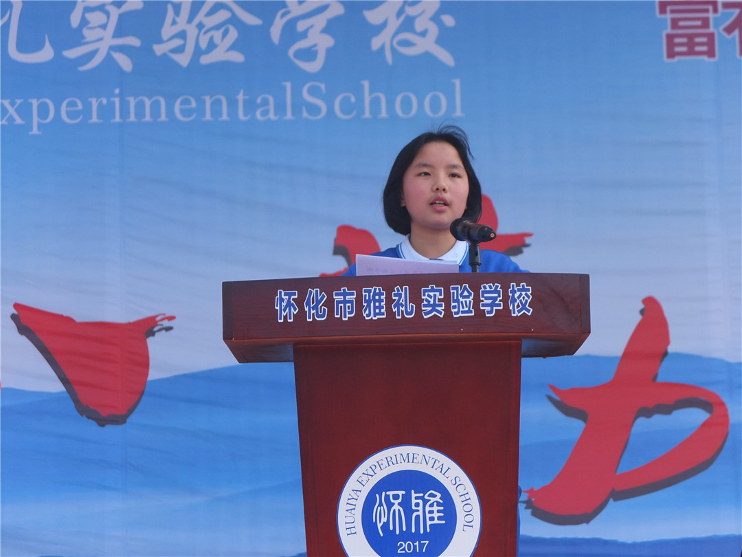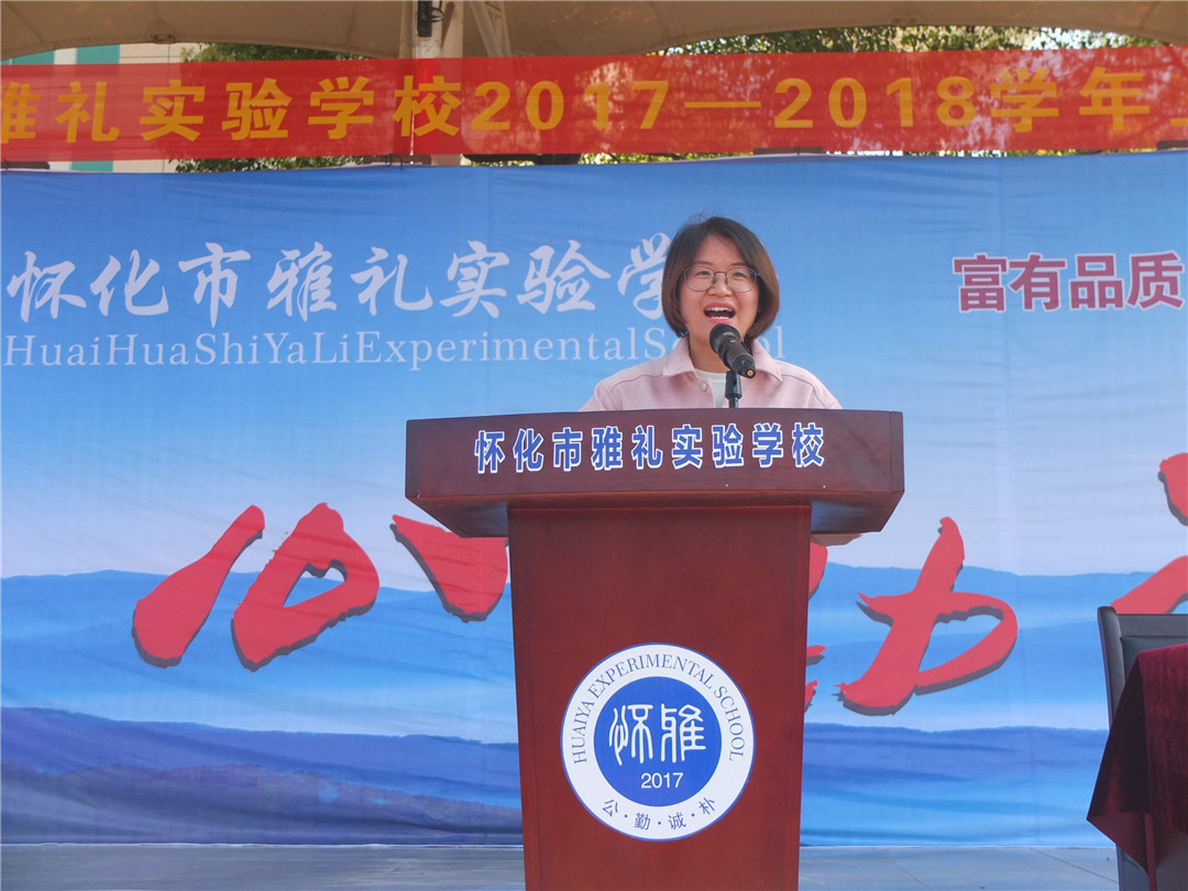 教師代表馬榕蔓老師作精彩發(fā)言。她說:同學(xué)們能取得喜人的成績,離不開我們在座的每一位老師的辛勤付出,我為能與這么一群優(yōu)秀且樂于付出的同事共事而深感榮幸,為能在懷雅這樣一個積極向上,注重內(nèi)涵發(fā)展,注重品質(zhì)提升的大家庭工作、生活而驕傲。