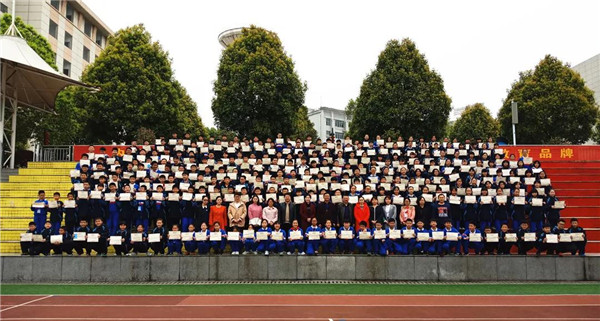 優秀學生代表龍蕾同學在會上和大家一起分享了成功的三要素:良好的學習態度,高效的學習方法,一顆寧靜的心。之后,學校領導給優秀學生頒獎并合影。