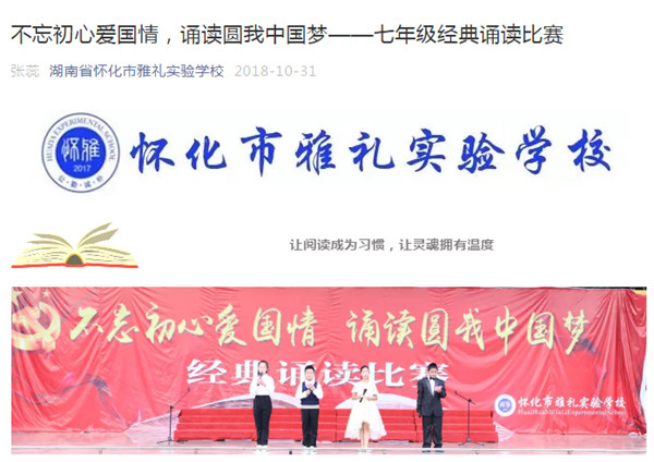 2019-01-18書中自有黃金屋,書中自有顏如玉,腹有詩書氣自華,最是詩香能致遠。10月30日,“愛中華,樹理想”德育主題月系列活動之“不忘初心愛國情,誦讀圓我中國夢”經典誦讀比賽在操場舉行。我校副校長左小平、劉彩云出席活動,向金剛、徐艷、吳孝位、張宇、黃芷琦等老師擔任評委老師。