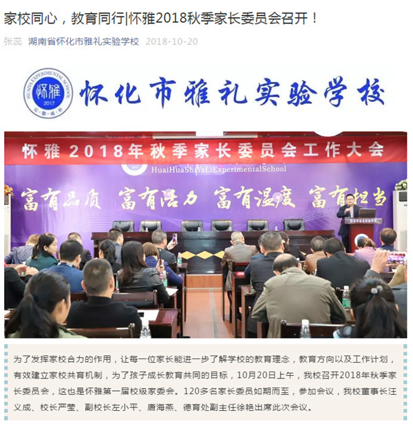 家校同心,教育同行|懷雅2018秋季家長委員會召開!