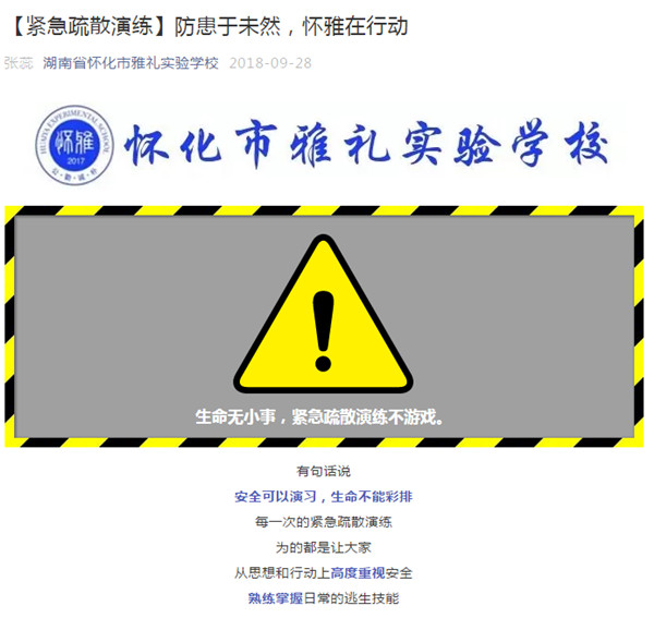2018-03-29今年3月26日,是第23個“全國中小學生安全教育日”。為推進學校安全教育的有序開展,積極培養學生珍愛生命、關愛生命意識,增長基本的安全自護知識,提高避險抗災能力,營造良好的教育安全環境,提高師生的安全意識,懷化市雅禮實驗學校開展了以“強化安全教育,確保生命安全” 為主題的系列教育活動,讓“安全”深入人心。
